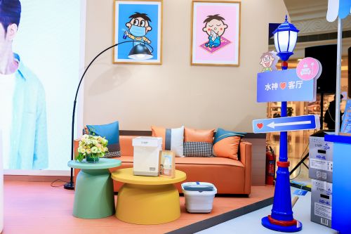 契合发布会主题,旺旺水神现场模拟家居环境,以新品水神HD-4L消毒机为中心,连接客厅、卧室、厨房、餐厅、卫浴等日常环境,用水神替代自来水使用,演示客厅地面清洁、卧室家纺打理、厨房蔬果清洗、卫浴系统除味、全屋降甲醛等,全场景展现水神HD-4L消毒机的家庭应用场景。