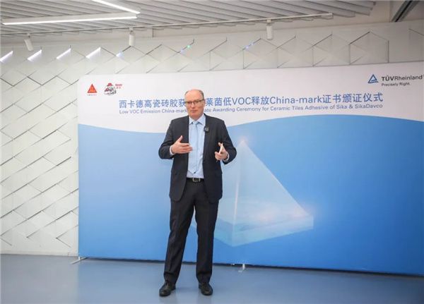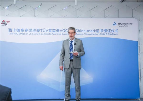 “祝贺西卡德高瓷砖胶系列产品通过TÜV莱茵的全面测试和审核,获‘低VOC释放’认证,表明西卡德高在环保意识和安全管理上的高要求。期待我们能在建筑材料方面有更多的合作,为产品的环保和定制提供更高的标准。”
