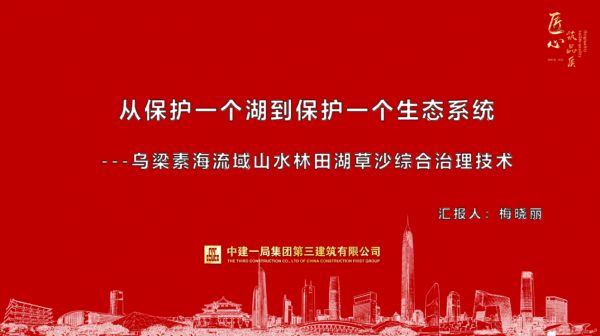 在随后的建筑应用创新典型项目分享环节,中建一局三公司副总经理、总工程师梅晓丽带来了《从保护一个湖到保护一个生态系统——乌梁素海流域山水林田湖草沙综合治理技术》案例分享,详细介绍了乌梁素海流域山水林田湖草沙综合治理技术相关做法和经验。