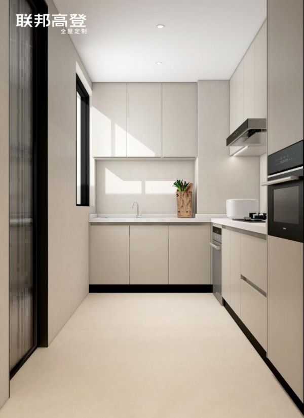 厨房以经典洗切炒动线现身,统一隐式收纳,收获整洁清爽。