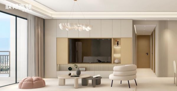 阳光自然入室,令空间通透而舒展。电视柜为柔润双色搭配,打造充足收纳区及免拉设计,一秒回归轻简状态、清爽观感。