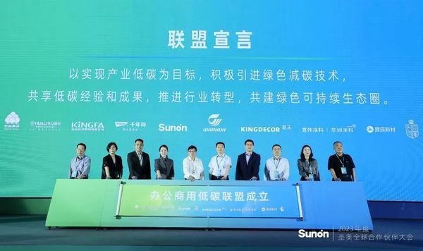 5月27日,主题为“追光逐梦 链动未来”的2023年度圣奥全球合作伙伴大会在杭州圣奥科创园举行。大会现场,圣奥科技、丰林木业、华富立饰板、金发科技、千年舟板材、万华化学、夏王纸业、展辰新材、宣伟涂料、中牛实业共十家企业,成立了办公商用低碳联盟,并现场签署“办公商用低碳联盟宣言”。