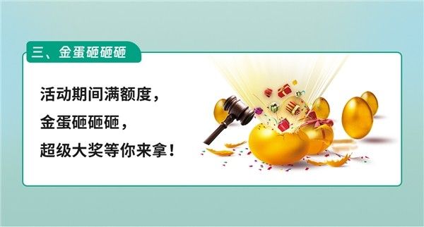活动期间满额度,金蛋砸砸砸,超级大奖等你来拿!