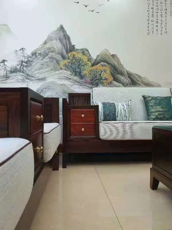 周克荣:我们的产品样式一直都在不断更新,从比较传统一点的新中式向轻奢方向发展,比如黑胡桃这个系列就是向年轻时尚的方向发展,现在的年轻人对传统的家居不太喜欢, 45岁以上的消费者会比较喜欢中式的氛围,所以针对的人群不一样,我们两个系列的产品都在不断的更新中。