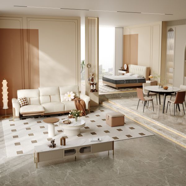 芝士系列,就是想给大家营造一种温暖、松弛、治愈的氛围。带点暖调的奶油色系温柔得刚刚好,空间也会显得更通透,加上卡其的撞色,中和了奶油的甜,久处也不会有负担感。芝士沙发50825线条流畅柔和,体态饱满,憨实可靠;芝士床C224通过打造沉浸式睡眠环境来让消费者享受高质量睡眠。这个系列就像给生活加上了一层暖色调的滤镜,营造了一种温暖治愈、干净通透的氛围可以很好地缓解焦虑导致的负面情绪、负面的生活方式,让大家回到家能够卸下一身疲惫,得到治愈。