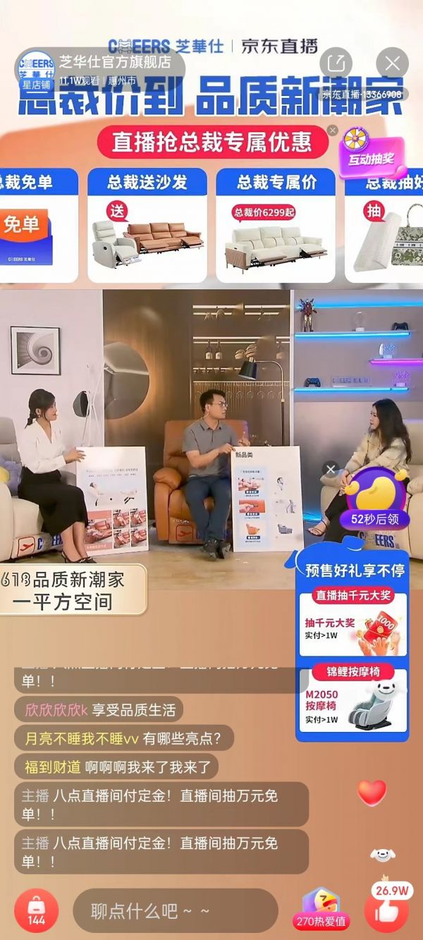 倡导头等舱的生活方式不仅仅是说说而已,芝华仕坚持舒适源于科技的品牌核心战略,为消费者打造温暖舒适治愈性的家居环境,唤醒消费者对品质新潮家的向往,正如龙总在直播间中说到的“能带来情绪价值的家,才是新潮家。新潮家让我们对家充满想象期待,让我们不是回家,就是在回家的路上”。如今芝华仕618预售已经全面开启,还有1元抢万元免单、0元预定、搭配购送不止1500超多惊喜福利,快来把品质好物带回家享受你自己的品质新潮家吧!