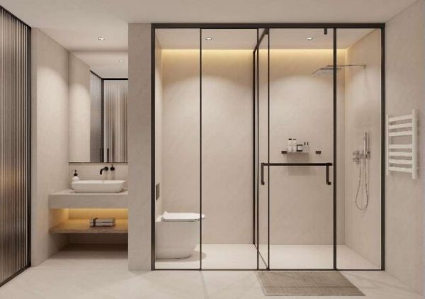 开放式浴室需要在在防水系统、静音系统做到较好技术解决,对淋浴房要求上较高,不管是推拉门还是平开门都需要全面设计和材质有相应防水功能和静音效果,开放式浴室最好选择到顶T型淋浴房设计,不仅能防止水汽外露,且可隔断味道外溢。