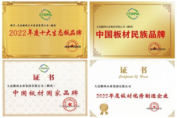 “中国驰1名商标”、“中国名牌”、“央广网十大品牌”、“中国木业百强企业”等荣誉接踵而来。而今,“中国板材国家品牌”、“中国板材民族品牌”的取得,更承载了千百万家庭对鹏鸿的信赖与支持。