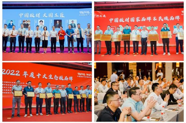 作为中国木材与木制品流通协会副会长单位,鹏鸿受邀出席本次盛会,并荣获“2022年度十大生态板品牌”、“2022年度板材优秀制造企业”、“中国板材国家品牌”、“中国板材民族品牌”荣誉,为板材行业树立匠心品牌典范。