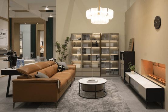 同时,也带来了不同风格的新品,有主打品质升级的黑标系列,材质和设计方面都做了升级;还有一些轻奢风、奶油风的新品,突破实木家具只能是原木风的刻板印象,如实木+真皮的轻奢风沙发,实木+岩板的电视柜/茶几,实木+白鹅羽绒的软包床等。