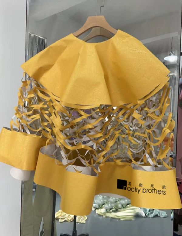 此次艺术漆服装造型,选用明亮的黄色“艺术水泥”产品为主打,镂空的网格斗篷加上撞色扇形装饰,大扇尾与大摆裙的照应相得益彰,在靓丽活泼的师生联袂秀中,5防水性成品艺术漆再一次成功展现了它刚柔并济的魅力。