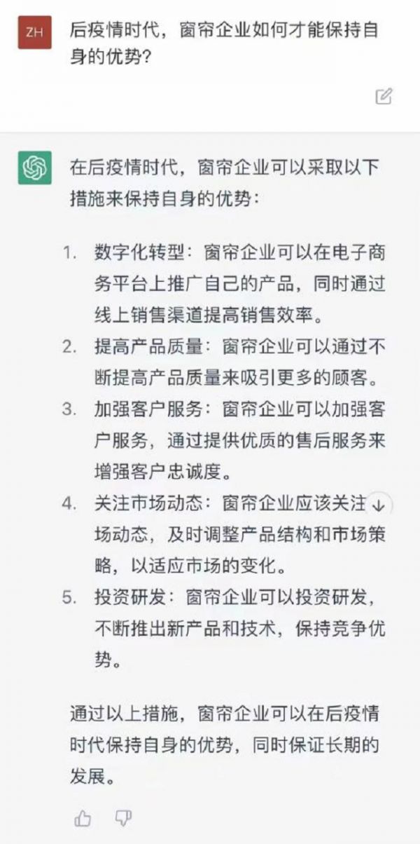面对全新挑战,无所不知的ChatGPT给窗帘企业提出了哪些建议?