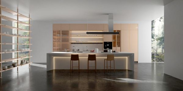 空间中的方寸尺度自在舒展,一体化设计令餐厨彼此联合,又各有分工,理性与感性恰到好处的游走于中性色系之间。另外在收纳方面,隐藏式的奢石墙面设计,光线和视觉都成为连贯整体的一部分,用创意思路和精致细节的结合呈现风格原本的面貌。