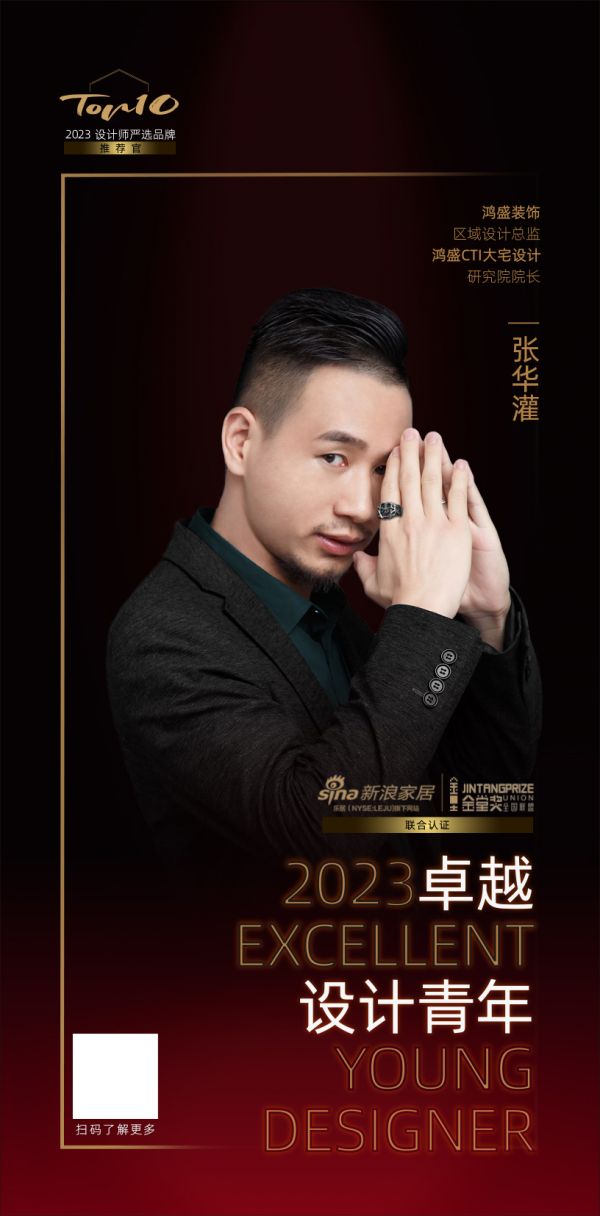 “2023卓越设计青年”由新浪家居和金堂奖全国联盟发起,依诺岩板瓷砖联合主办,是设计业界最具传播价值的年度先锋荣誉之一,其评审团成员由全国设计领域青年精英设计师组成,新浪家居与金堂奖联名认证,关注以设计驱动的产品力,发挥设计师服务价值,发掘有创意有故事的好设计。设计师张华灌荣膺“2023卓越设计青年”称号。