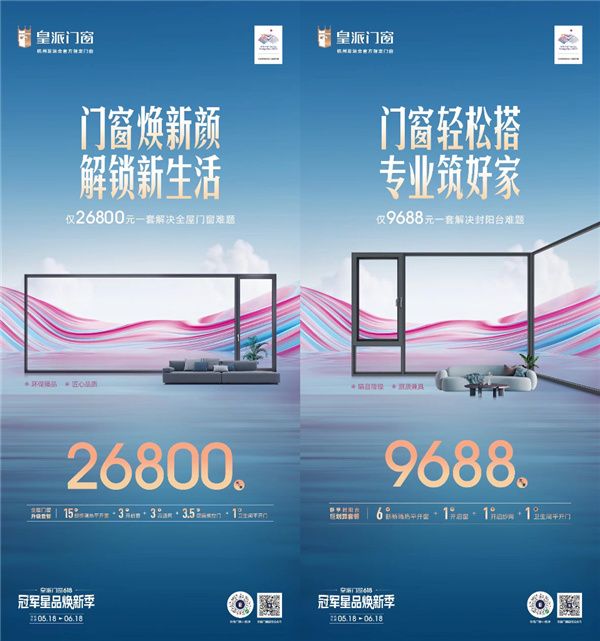 6月2日在皇派门窗直播间亮相的升级版【26800全屋门窗升级套餐】、【9688静享封阳台巨划算套餐】,新升级,更实惠。“皇派门窗专属定制套餐,全屋门窗任性布置,一站式轻松封阳台,真高端、真不贵,让我们轻松焕新门窗”,杨威表示。