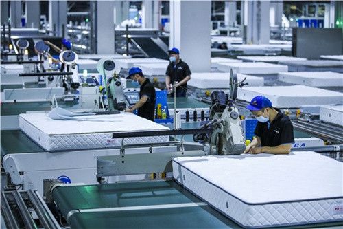 据国家知识产权局显示,获奖专利名称是“一种功能联动的智能床垫”。智能床垫包括面料、床框及包含多个相互连接的气囊垫,面料内嵌入安装有多个均匀分布的、通信连接有控制器的压电传感器。其控制方法为,控制器对多个气囊的气压进行监测和分析以判断床垫的受压区域,并划分出与身体多部位一一对应的多个拟态区;控制器对多个压电传感器反馈的信号进行分析并生成睡眠数据,并结合输入的功能指令以及睡眠数据对至少一个拟态区内的多个气囊的气压进行相应调节以实现床垫的按摩、止鼾和闹醒的功能,满足了用户在睡前、睡中和苏醒各个阶段的相应需求,从而达到提高用户睡眠质量的目的。