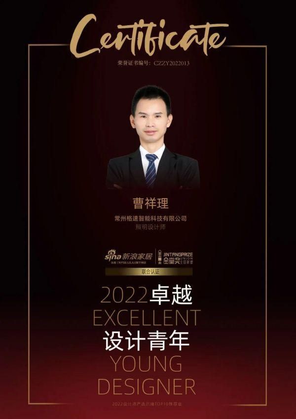 设计师曹祥理荣膺“2022卓越设计青年”称号,由德力西电气联合其经销商伙伴共同推荐。