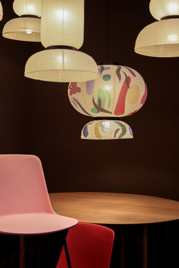 Formakami吊灯高低错落悬挂于&Tradition品牌区域,而引人注目的彩绘版本也置身其中,让人眼前一亮。全新Formakami限量版于设计上海新品区域正式全球首发,象牙白纸和黑色染色橡木上增添了细节设计与装饰,这件独特的作品从原始、低调的美学出发,更突显了灯具设计师Jaime Hayon天马行空的想象力,充满浑然天成的个性氛围。