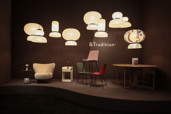 在与Panton家族的密切合作下,&Tradition为Flowerpot系列迎来了五种全新充满活力的颜色。此次设计上海带来的Dark Plum VP9便携灯,色彩深沉而有力,置于Rotate边几之上备受关注。两旁则是经典的Little Petra休闲椅,以及全新配色的Rely Chair。