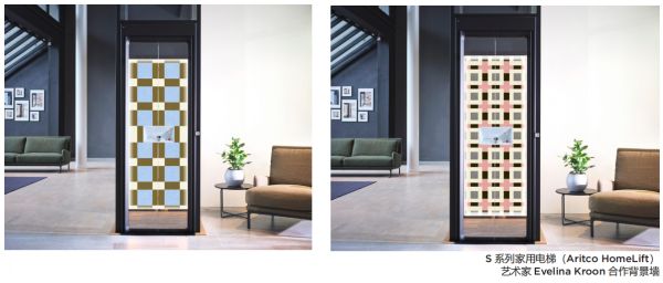 Aritco 瑞特科家用电梯、包括以上两款电梯均能通过 SmartLift 应用程序,在手机上实现智能控制。展会现场,更可以一睹有瑞特科家用电梯设计师Alexander Lervik与北欧著名艺术家Evelina Kroon合作的个性化背景墙,