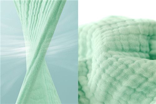 为还原棉花的自然本色,新品纱布被采用安全性更高的生态印染工艺,色彩还原度高的同时还耐用、耐水洗。整个生产过程不添加荧光增白剂,节能减耗,对环境友好,产品获得中国绿色产品认证,无刺激,不易致敏,婴幼儿也能放心使用。