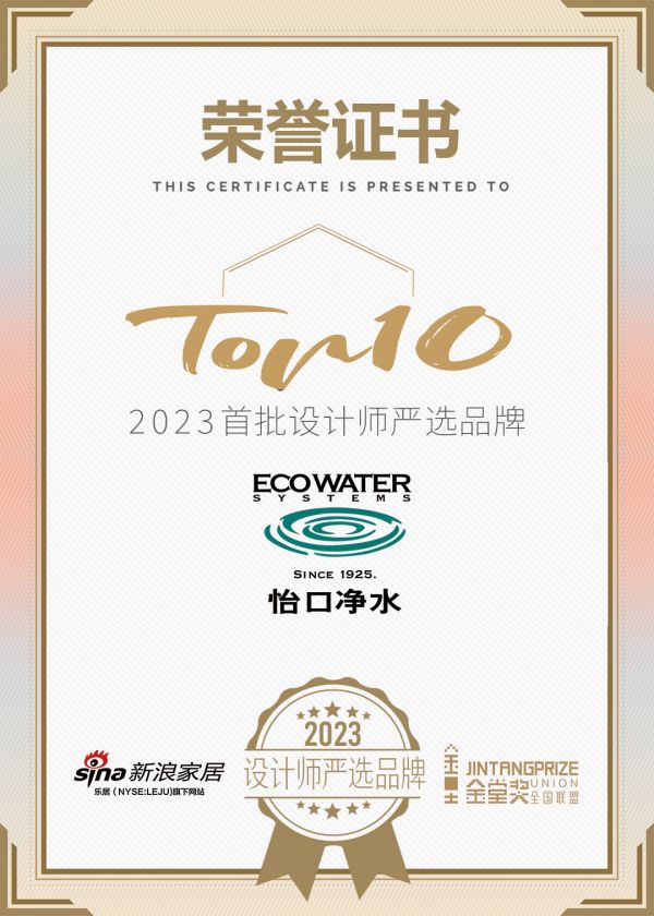 实力蝉联!怡口净水荣膺新浪家居×金堂奖「2023首批设计师严选品牌TOP 10」