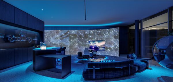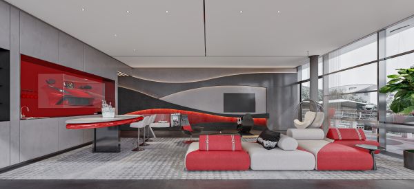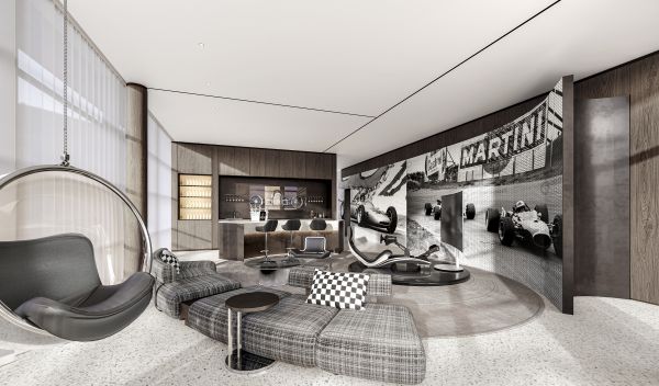 F一赛车酒店是在疫情期间转型的,我们把赛车品牌的强IP加入设计中,将每个品牌的汽车logo变成了博物馆的展品,同时打造了一个度假酒店。