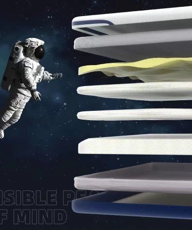 在航天科技的启发下,双虎星际舱床垫使用了太空记忆棉这一材料。作为具有极强压力平衡功能的材料,太空记忆绵可以在人体施加压力时迅速适应身体形状。这使得身体的重量可以更均匀地分布在双虎星际舱床垫上,从而减少压力点并改善身体血液循环,提供舒适包裹和支撑性的睡眠体验。