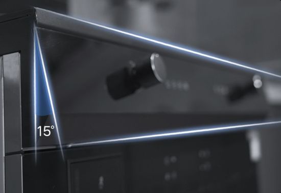 更贴心。15°人机工学操控界面,悬浮视角充分考虑人体工学,贴心的操作面板倾斜设计,让人在烹饪过程中无需过度弯腰就能观察调节。