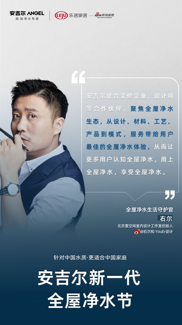 “安吉尔新一代全屋净水节,以用户体验为基石,协同装企渠道、设计师等合作伙伴,共同打造中国家庭高端全屋净水新生态,针对中国水质,让全屋净水更适合中国家庭。”