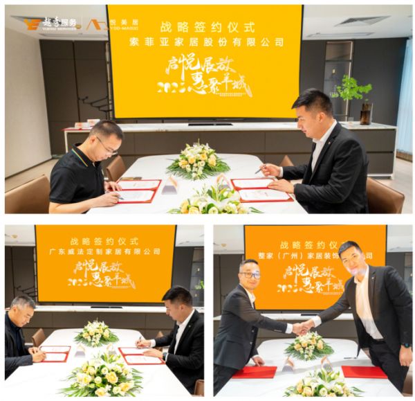 活动仪式上,悦美居公司和索菲亚家居股份有限公司、广东威法定制家居有限公司、整家(广州)家居装饰有限公司等行业内知名家装公司签订战略合作协议。未来,悦美居将与战略伙伴通力协作,充分发挥各自产品、技术、人才等多方面的优势,为客户提供更具科技前沿优势、更方便舒适的家居产品,落地更优质、更惊喜的整装解决方案,助力家装市场的可持续发展。