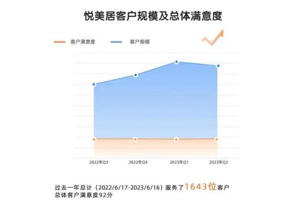 2023年以来,悦美居全新开启“地产&整装“联赢战略,以客户为本,实现家装选配一站式服务,同时持续发展新交付项目整装业务与存量项目翻新改造业务。过去一年时间,悦美居服务了1600+位客户,总体客户满意度92+分,并于今年6月初倾力打造了悦美居全国首家实体社区门店“福莱花园美居体验馆”,服务周边5公里内22个小区的市场化客户,整合全屋装修所需产品,提供“所见即所得”的沉浸式消费体验,持续满足客户对美好家装的不同需求。
