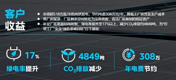 不仅如此,闲置的厂房屋顶变为宝贵的资源,盘活了企业固定资产,帮助工厂挖掘前所未有的价值,为“灯塔工厂”变身“绿色零碳园区”打下基础。