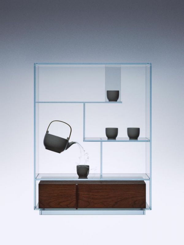 全新玻璃茶棚运用当代通透材质,带来轻盈的时代美感,大胆运用现代超白玻璃为主体材料,既保留其灵活错落的格局,更带来轻盈通透的质感。产品设计灵感源于在清代广为流行的陈设类器物——多宝阁。传承经典格式的同时,也将器物线条进一步抽象提纯,以更简洁的格局呈现出更丰满的当代生活适配性。