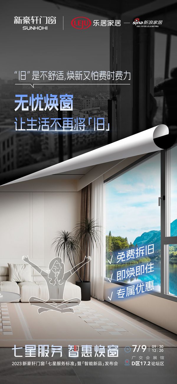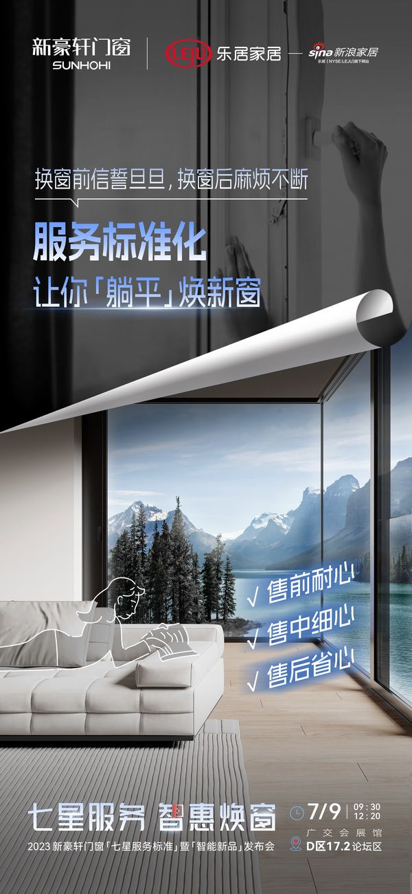 与此同时,消费升级促使着行业向高品质、精细化转型。为进一步满足消费者对美好人居生活的无限向往,也为行业树标杆、促发展,7月9日,新豪轩门窗联合新浪家居将共同举办“七星服务·智惠焕窗“——2023新豪轩门窗「七星服务标准」暨「智能新品」发布会(以下简称“发布会”),立足旧窗焕新趋势,聚焦焕窗痛点与用户消费需求,以“智能升级”、”服务升级“双引擎,驱动门窗焕新向标准化、高端化转型,实力引领旧窗焕新赛道,与广大消费者共赴美好新生活,开启“智惠门窗”新未来。