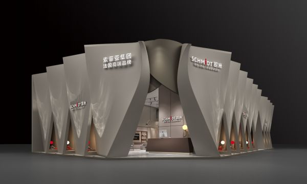 展馆设计灵感源于寓意着光明和自由的法国国花——鸢尾花和鸢尾花纹章。法国司米以法式浪漫风情为基底,提取鸢尾花流畅线条,结合对称性结构设计手法,造出一朵代表自由、纯洁、光明、美丽的高级灰“鸢尾”形态展馆,其缓缓绽放的姿态,寓意并诠释着法国司米品牌不断向新、向上的蓬勃生命力,以轻高定的姿态无限探索法式精致生活的更多可能性。