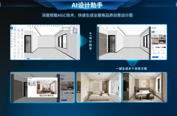 他表示,AIGC通过模型训练学习后,能够融通资料库里设计师各种风格的细节,设计师只要给大概的思路框架,它就可以给出解决方案,在设计环节,一键生成多个方案,简单易操作,节省人力、培训、运营等成本。在销售环节,通过智能组织方案配图,优化方案呈现形式,让设计师节省时间精力,专注核心设计服务工作,帮助提高前期获客率。