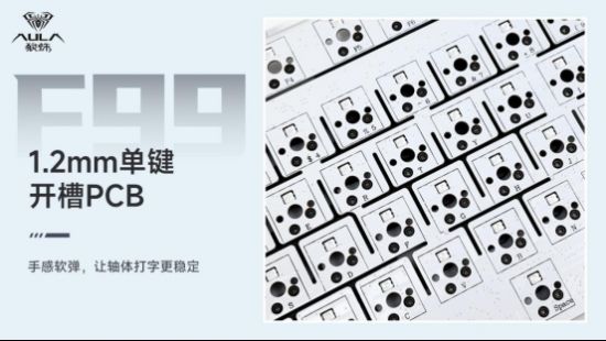 全键无冲&全键热插拔,F99全键盘任意按压均没有冲突,不管是办公快捷键还是打游戏中的快速击打出高光技能,都无需担心同时按下按键后锁键,导致错误频发。配备1.2mm单键开槽PCB,版面的手感软弹,让轴体打字更稳定,长时间打字不累手。