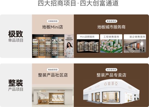 “对于我们轻车熟路的地板行业,这次的策略目标就是打造地板界的‘小米模式’,以极致性价比、优良客户口碑、高效运营的方式,突破地板行业发展瓶颈!”杨绍智说,“同时,我们为我们的合作伙伴量身定制了四个投资选项,想做极致的单品的可以做地板Mini店或地板城市服务商,想进入整装赛道的可以加盟索菲亚空间定制社区店或专卖店”。