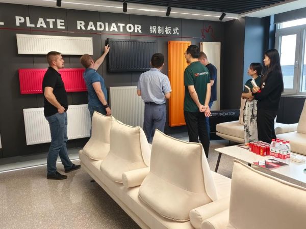 同时,黄总也为来宾详细介绍了钢制板式暖气片的生产过程。要做好一组暖气片,需要三十多道工序,上料、冲压、焊接、打压、电泳等。为保证使用不漏水,仅焊接就分为多个步骤,更有打压检验、挂片检验等,保证每一步都严丝合缝,漆面采用静电纳米喷涂,让漆面整洁平滑如钢琴。