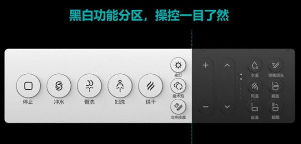 Max有两种遥控器,一种是黑白分明的手柄遥控,白区设置了冲水、臀洗、妇洗、烘干、魔术泡、按摩等常用功能;而黑区则集成了温度控制、喷嘴清洗、翻盖、翻圈等功能,让操控更加一目了然。另一种是双按键mini遥控,只设置了翻盖和冲水功能,使用更加简单,适合老人和孩子。