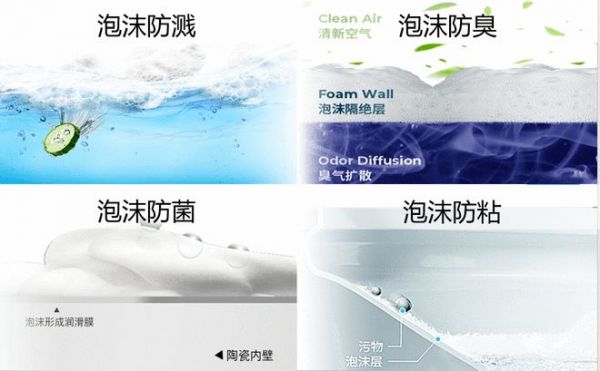 Max可以在如厕自动产生泡沫层,起到包裹的作用,大大缓冲了入水的冲力,即便溅起水花也会被致密的泡沫层牢牢封堵住。同时,泡沫的润滑效果也很好,能有效防止便便粘在马桶壁上。此外,致密的泡沫层还可以彻底隔绝臭气,起到防臭作用。而这层30mm泡沫可以在马桶中存留4小时,还可以长效杀菌,简直是一举多得。