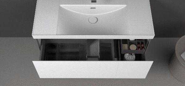 同时,这款浴室柜的柜体设计也别具匠心,采用分类收纳的方式,利用多功能子母收纳抽屉,实现大小物品的分类摆放。大物品一目了然,小物品好放好找,使用感超棒。