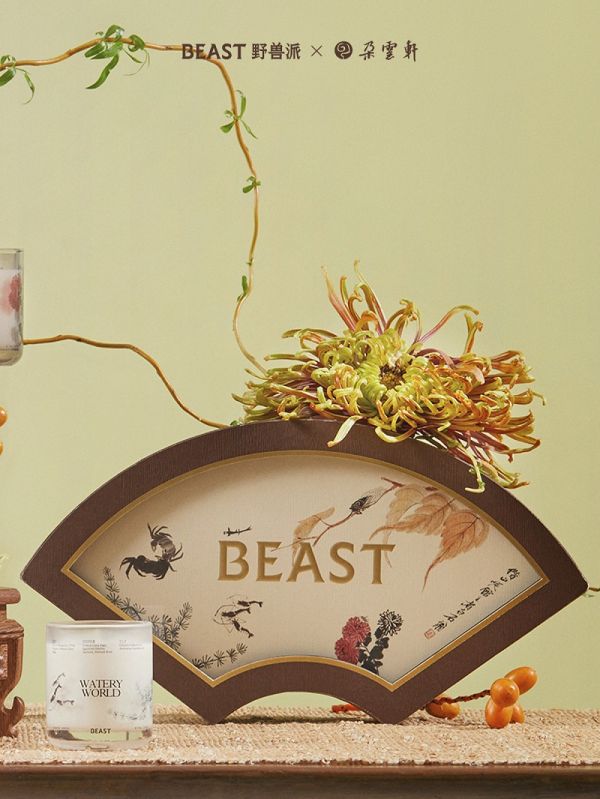 “秋意浓”系列的第二款礼盒,是一款精致的小香扇,以苏式花窗为灵感,白石老人笔下的秋蝉、落叶、螃蟹、菊花……让秋日氛围,呼之欲出。礼盒内含三款野兽派秋季新香——采菊东篱,是绿意花香调;水生万物,是水生芳香调;生命之木,是龙涎木质调。中秋月下,携礼而来,浅闻新香,愿你的小小世界,温暖安定。