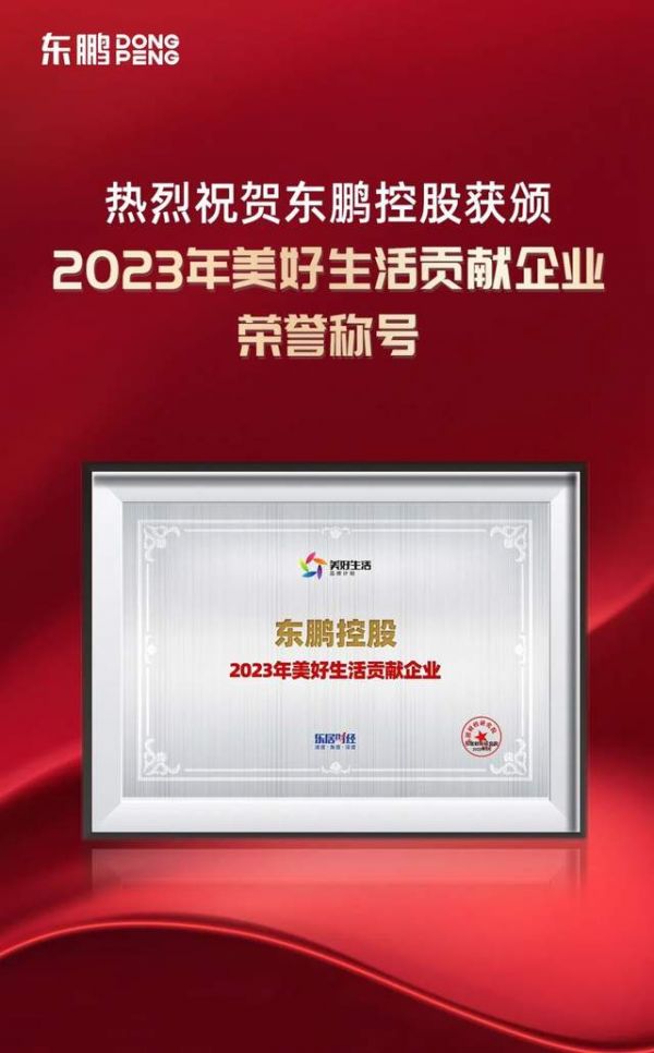 △东鹏控股荣获“2023年美好生活贡献企业”