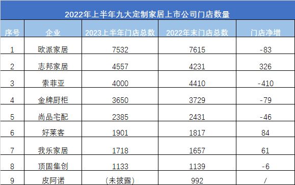 在2023年大环境的影响下,各大企业的开店情况如何?对此,搜狐焦点家居聚焦“九大定制家居上市企业2023上半年的门店数据”进行梳理与分析。