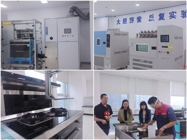 除噪音实验室的静音测试、盐雾实验室内对产品的耐腐蚀测试、油烟分离实验室的气味降低度和油脂分离度测试以及灶具零部件实验室内的10万次耐久性测试外,新浪家居探展团重点感受了关于美大黑金刚面板的暴力测试。