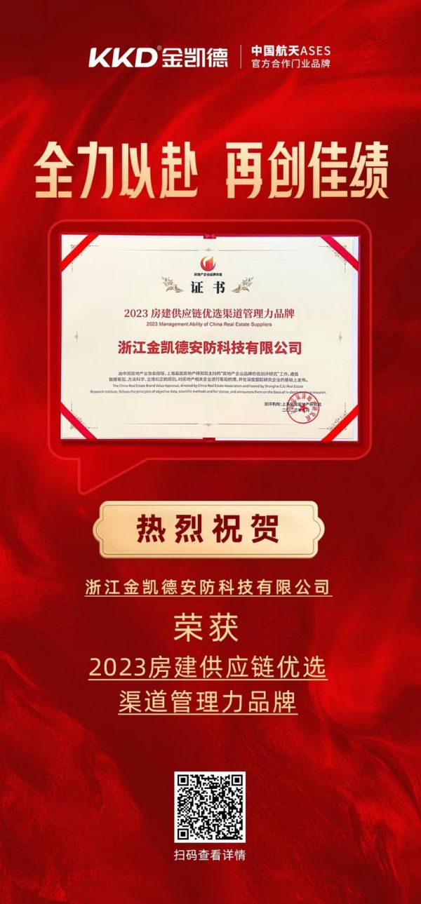 金凯德坚定的走高质量发展的道路不动摇,继续夯实品牌综合实力,不断提升生产力、产品力、服务力、交付力以及创新力,把质量要求和质量管理延伸到生产、检验、销售、服务等各个环节。2023年携手ASES成为“中国航天ASES官方合作门业品牌”,将对标航天品质,以航天材料、工艺全方位提升金凯德的产品力,用科技与美共筑美好生活。