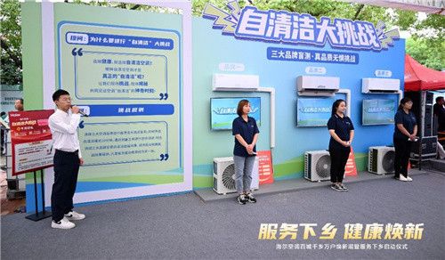 秉承着“服务下乡,健康焕新”的理念,海尔空调走村入户,为用户免费清洗空调,提高健康空气意识。同时现场发起自清洁、制热大挑战,用原创科技为用户带来全新空气体验,提供健康焕新的新选择。