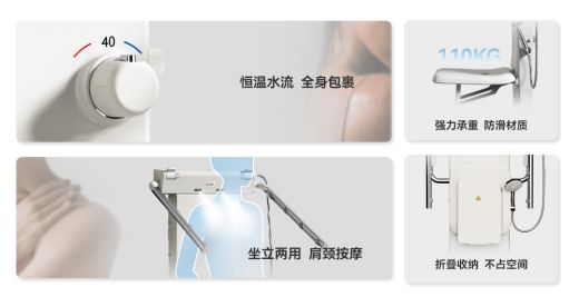 值得一提的是,这款淋浴器的折叠收纳功能也是一大亮点。由于其折叠式设计,使得淋浴器在不用时可以轻松收纳,不占任何空间。而强力承重110KG,防滑材质则保证了使用的安全性。恒温的出水功能叶可以让享受淋浴的同时,不必担心水温的变化,让舒适体验无需等待。